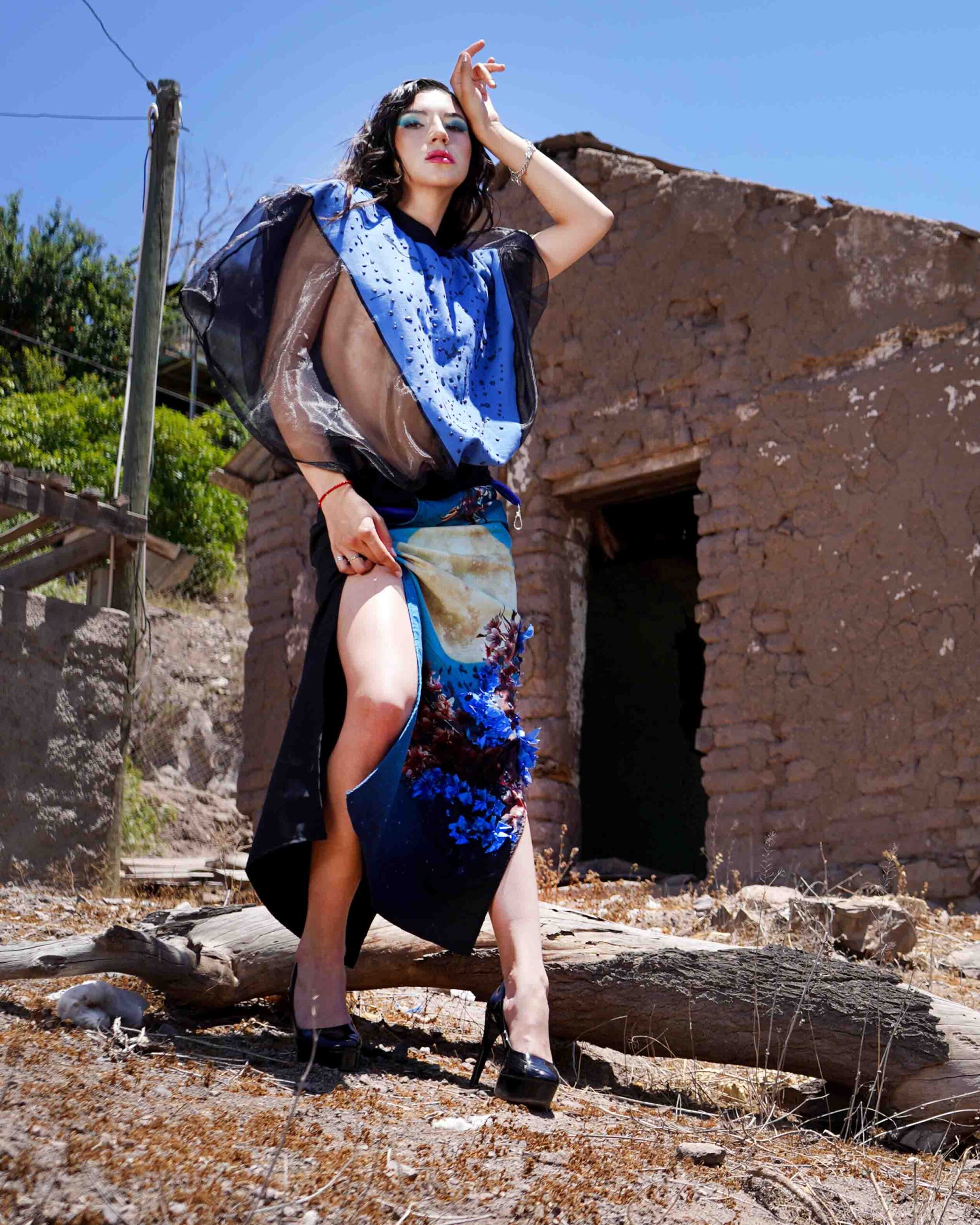 Cuenta con pretina elasticada de denim delgado para mayor comodidad, tajo lateral asimétrico que suma movimiento y una espalda en gabardina negra que equilibra y da estructura a la prenda.